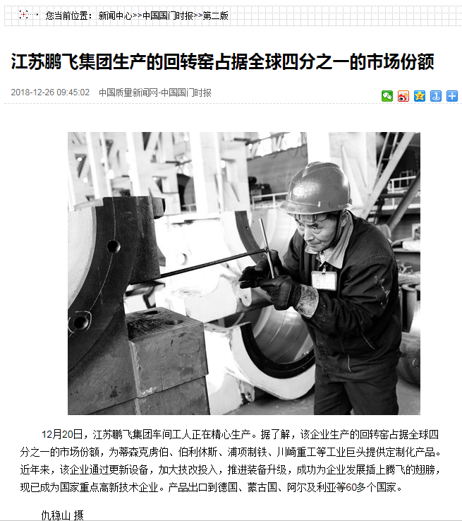 12月20日,江蘇鵬飛集團(tuán)車間工人正在精心生產(chǎn)。據(jù)了解,該企業(yè)生產(chǎn)的回轉(zhuǎn)窯占據(jù)全球四分之一的市場(chǎng)份額,為蒂森克虜伯、伯利休斯、浦項(xiàng)制鐵、川崎重工等工業(yè)巨頭提供定制化產(chǎn)品。近年來,該企業(yè)通過更新設(shè)備,加大技改投入,推進(jìn)裝備升級(jí),成功為企業(yè)發(fā)展插上騰飛的翅膀,現(xiàn)已成為國家重點(diǎn)高新技術(shù)企業(yè)。產(chǎn)品出口到德國、蒙古國、阿爾及利亞等60多個(gè)國家。
