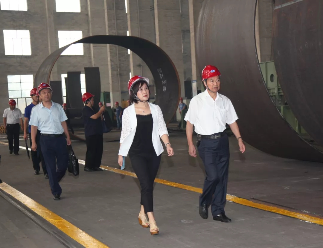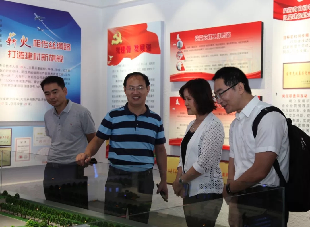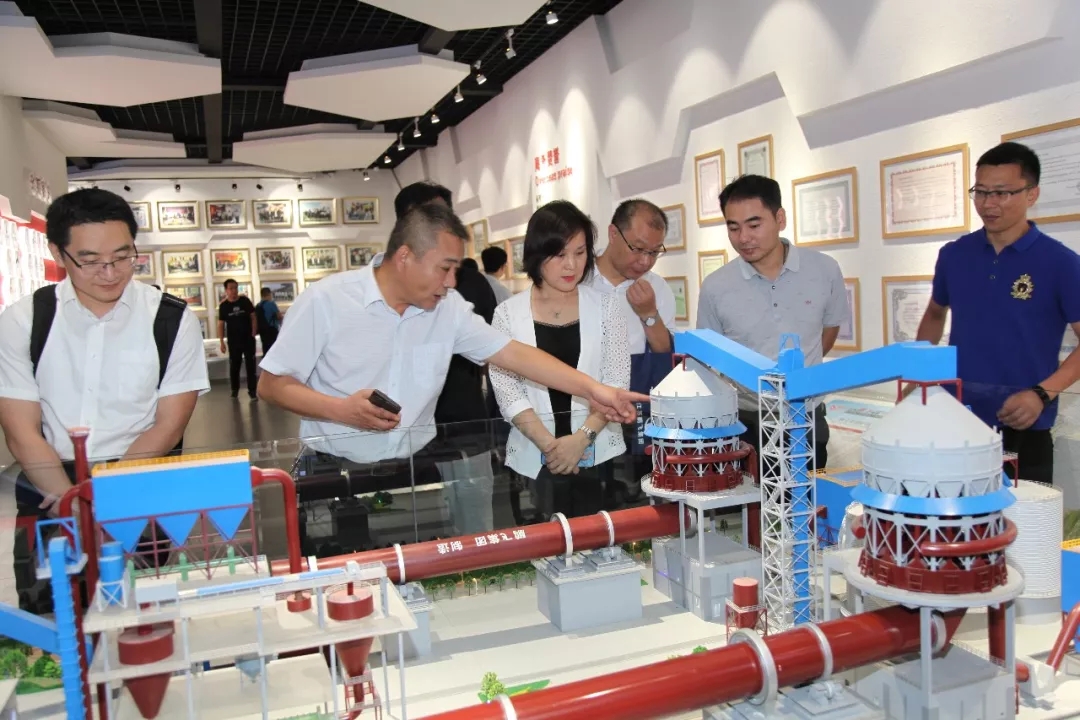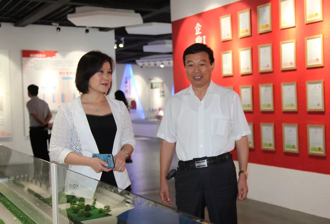 董事長(zhǎng)王家安陪同全國(guó)建材裝備標(biāo)準(zhǔn)化技術(shù)委員會(huì)秘書長(zhǎng)王玉敏參觀鵬飛集團(tuán)展示廳