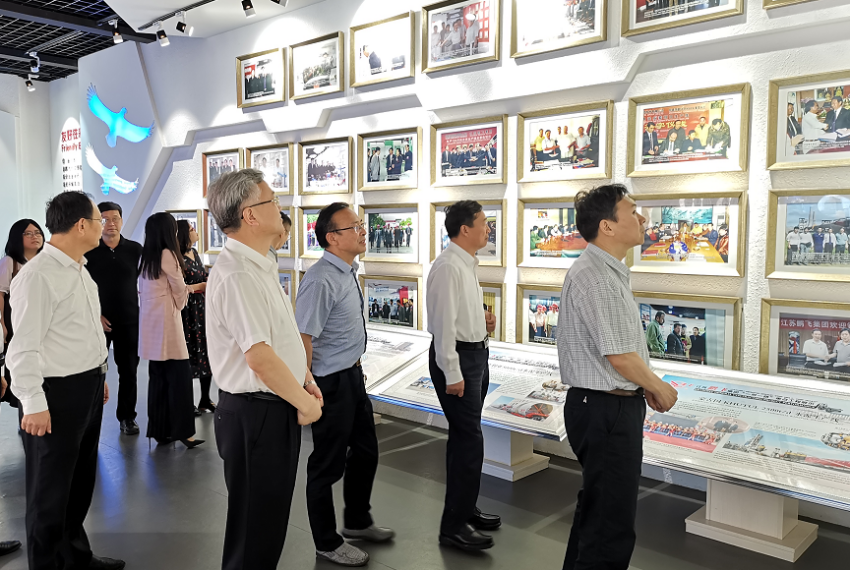 江蘇鵬飛集團股份有限公司董事長王家安帶領(lǐng)調(diào)研組一行,參觀了生產(chǎn)車間和展廳,向調(diào)研組介紹企業(yè)國內(nèi)外發(fā)展定位及在“一帶一路”沿線國家落地項目的概況,向調(diào)研組介紹企業(yè)現(xiàn)階段發(fā)展狀況、海外項目運行情況及企業(yè)未來發(fā)展愿景。