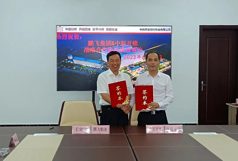 座談交流結(jié)束后,中新開維與鵬飛集團(tuán)共同簽訂了戰(zhàn)略合作協(xié)議,雙方將建立常態(tài)化交流聯(lián)系機(jī)制,加強(qiáng)全方位的合作,共謀高質(zhì)量發(fā)展新格局。衷心希望雙方以此次簽約為起點,同心同向、攜手共進(jìn),把合作具體工作細(xì)化量化,推動水泥工業(yè)用回轉(zhuǎn)窯早日在食品生產(chǎn)領(lǐng)域創(chuàng)新應(yīng)用,打造食品行業(yè)規(guī)?;椭悄芑氖痉稑?biāo)桿,實現(xiàn)合作共贏,共創(chuàng)美好未來。