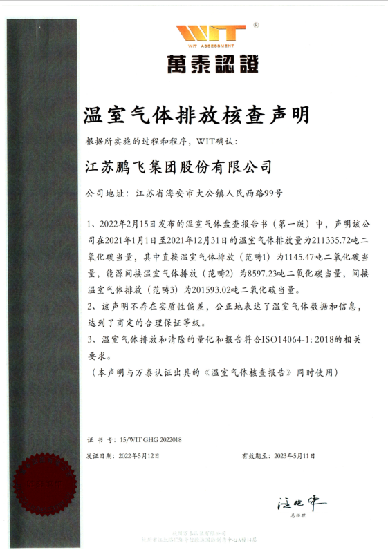 江蘇鵬飛集團(tuán)股份有限公司一直以來堅(jiān)持綠色采購,綠色生產(chǎn),綠色物流的原則,積極響應(yīng)并參與相關(guān)方(政府、客戶等)節(jié)能降排、碳排放報(bào)告活動(dòng)。