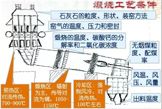 石灰石的煅燒分為三個區(qū)段:預(yù)熱區(qū);煅燒區(qū);冷卻區(qū)。石灰石煅燒過程大致分4個步驟:開始分解前的膨脹;碳酸鈣的分解;石灰石的燒結(jié);石灰的冷縮。此外根據(jù)石灰石煅燒工藝,可分為并流煅燒和逆流煅燒。