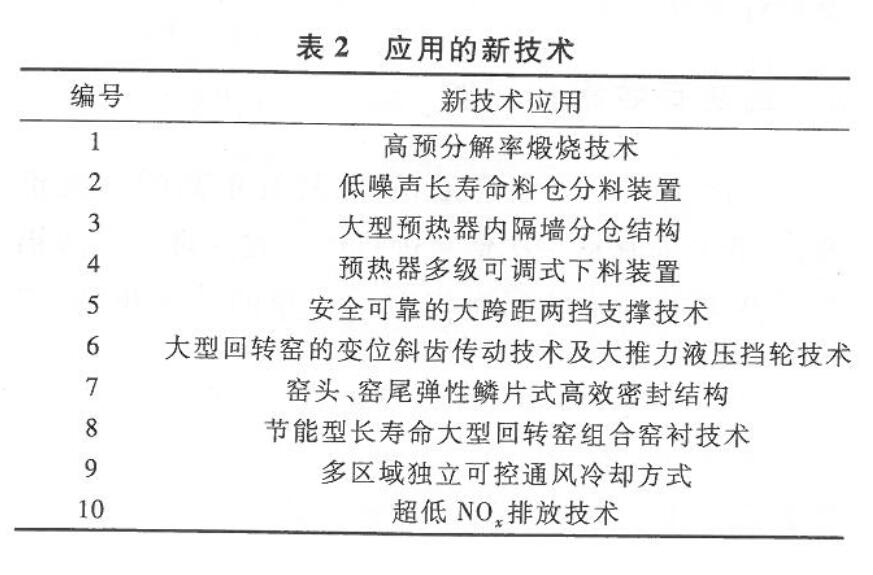 通過多年的自主研發(fā)和實踐經驗積累,我公司在本工程上應用了大量的回轉窯新技術,確保回轉窯系統(tǒng)的節(jié)能、環(huán)保、高效。具體應用的新技術列于表2。