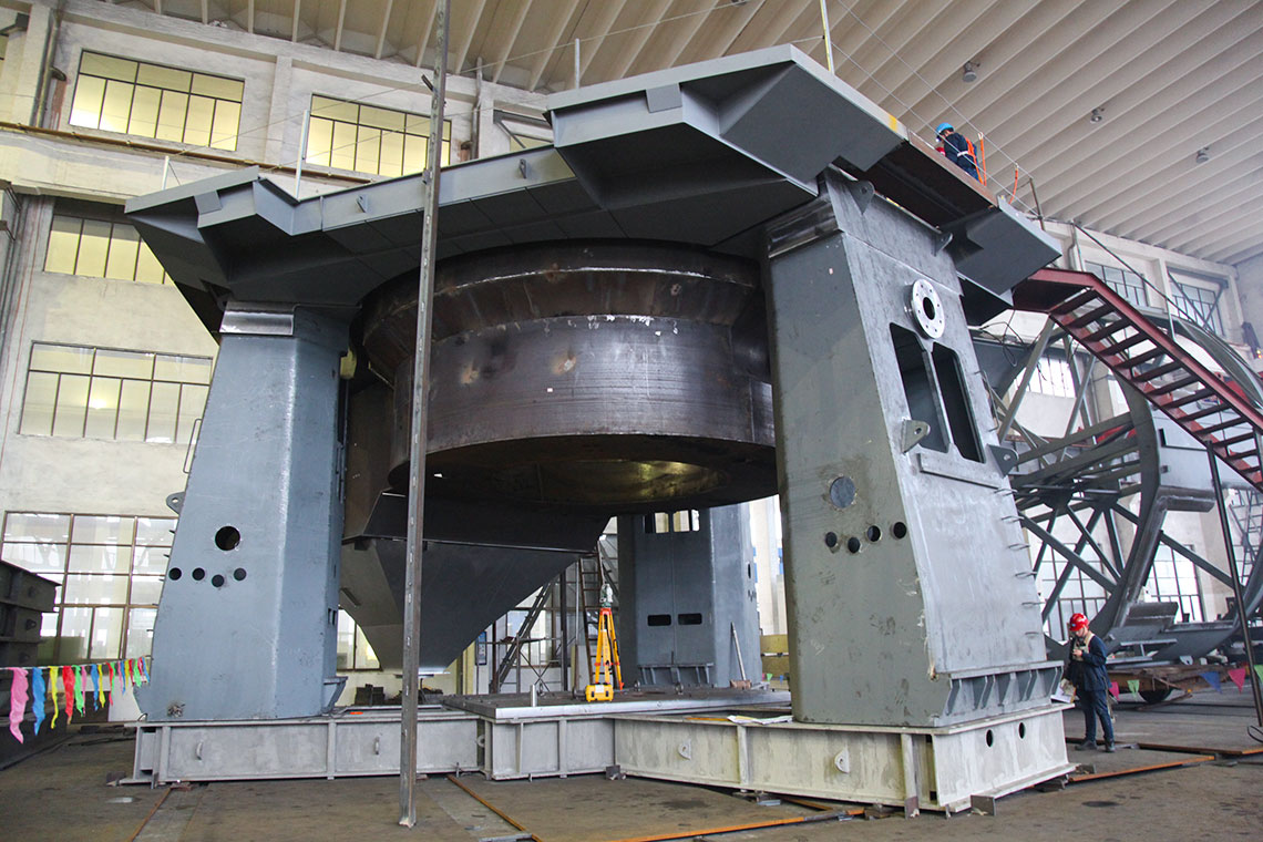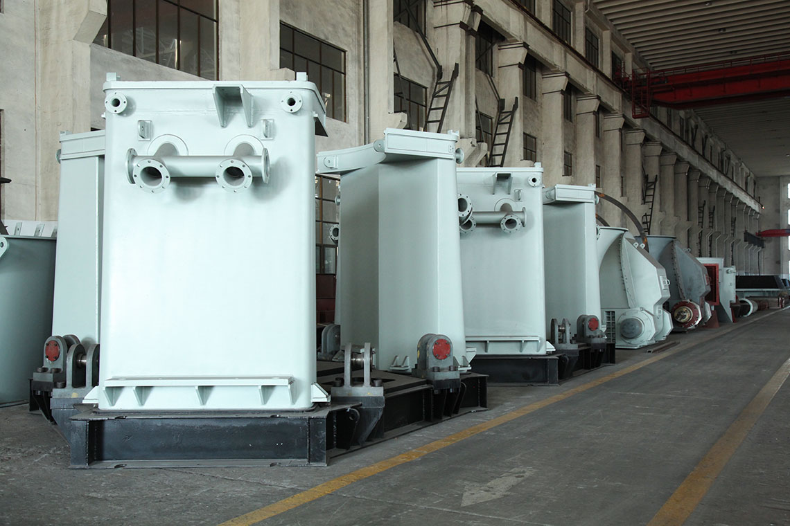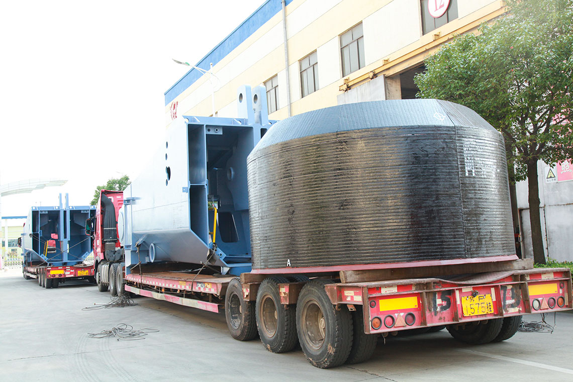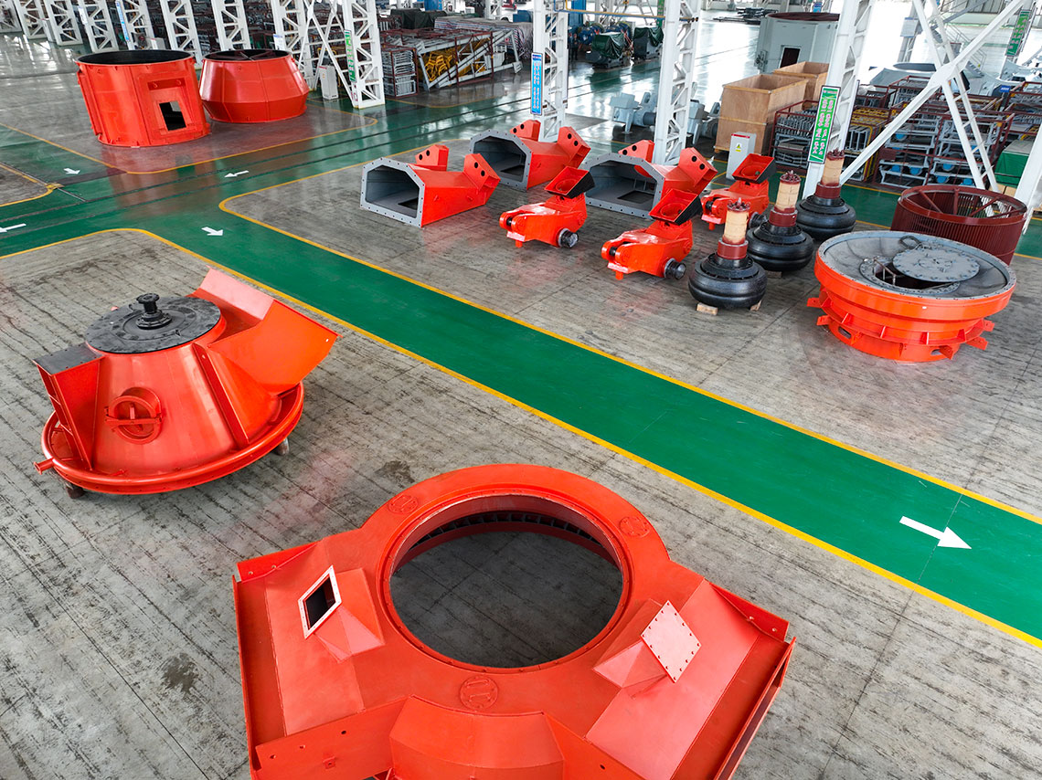 磨煤機三個磨輥由旋轉(zhuǎn)的磨盤帶動進行碾磨作業(yè)。入磨物料經(jīng)中心落煤管落在磨盤上后,由旋轉(zhuǎn)磨盤產(chǎn)生的離心力將其輸送至碾磨輥道上碾磨。碾磨壓力由彈簧或液壓加壓裝置產(chǎn)生,通過靜定的三點系統(tǒng),碾磨力均勻地傳至三個磨輥,通過加壓系統(tǒng)壓力傳至基礎(chǔ)。煤粉的干燥和輸送利用熱風(fēng)來進行。熱風(fēng)通過噴嘴環(huán)均勻分布于磨盤四周,將經(jīng)碾磨的物料干燥并輸送至磨機上部的分離器。物料的粗細粉在此分離,細粉排出磨機,粗粉重新返回磨內(nèi)碾磨。物料中的一些不可破碎物可通過磨機下部的排碴口排出。磨煤機主要由基礎(chǔ)部,減速機,下架機,中架機,磨盤,磨輥,加壓裝置,分離器,正壓風(fēng)密封裝置,蒸汽吹掃裝置等部件組成,還配有主電動機,潤滑油站,液壓站和密封風(fēng)機等附屬設(shè)備,另備有慢速傳動裝置,安裝檢修專用工具,扶梯平臺,煤粉分配器,速斷閥等配套設(shè)備供用戶選用。磨煤機采用液壓加壓系統(tǒng),在運行中即可對粉磨壓力進行調(diào)整,并具有更好的過鐵保護性能。在原標準型的基礎(chǔ)上增加了磨輥翻出裝置,并提高了磨體的抗爆能力。