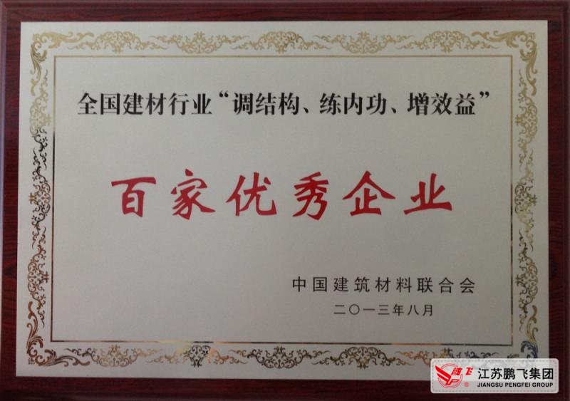 為樹立典型,有效遏制經(jīng)濟(jì)效益下滑,推進(jìn)建材行業(yè)調(diào)整結(jié)構(gòu)和轉(zhuǎn)型升級(jí),弘揚(yáng)正能量,發(fā)揮優(yōu)秀企業(yè)的典型示范作用,促進(jìn)行業(yè)科學(xué)發(fā)展,中國建材聯(lián)合會(huì)與各省市地方建材行業(yè)協(xié)會(huì)聯(lián)手開展推薦表彰“調(diào)結(jié)構(gòu)、練內(nèi)功、增效益”百家優(yōu)秀企業(yè)評(píng)比表彰活動(dòng)。江蘇鵬飛集團(tuán)強(qiáng)抓市場機(jī)遇,堅(jiān)持科學(xué)發(fā)展之路,創(chuàng)新經(jīng)營模式,被授予“調(diào)結(jié)構(gòu)、練內(nèi)功、增效益”百家優(yōu)秀企業(yè)榮譽(yù)稱號(hào)。