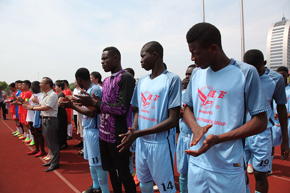 恰逢江蘇鵬飛集團(tuán)與*達(dá)成建設(shè)年產(chǎn)100萬(wàn)噸水泥粉磨站項(xiàng)目合同,應(yīng)江蘇鵬飛集團(tuán)的邀請(qǐng),7月15日*U17隊(duì)來(lái)到海安,并在海安城南實(shí)驗(yàn)中學(xué)與我縣教育聯(lián)隊(duì)舉行一場(chǎng)國(guó)際足球友誼賽,本次比賽由江蘇鵬飛集團(tuán)全程贊助。時(shí)值盛夏,天氣炎熱,但一點(diǎn)也不影響比賽的順利進(jìn)行,球員的激情和觀眾的熱情充盈整個(gè)賽場(chǎng),場(chǎng)面和諧融洽,雖為比賽,實(shí)則是相互交流學(xué)習(xí),充分發(fā)揮了友誼第一,比賽第二的精神。此次友誼賽是我縣本土球隊(duì)首次與國(guó)際球隊(duì)接洽,在比賽中也讓我縣教育聯(lián)隊(duì)受益匪淺、感觸頗深,對(duì)今后青少年校園足球教育大有裨益。比賽結(jié)束后,董事長(zhǎng)王家安帶領(lǐng)*U17足球隊(duì)員參觀了鵬飛集團(tuán)生產(chǎn)基地,并舉行座談及饋贈(zèng)禮品,簡(jiǎn)單的一場(chǎng)足球賽,卻為譜寫中非友誼添上實(shí)實(shí)在在的一筆。