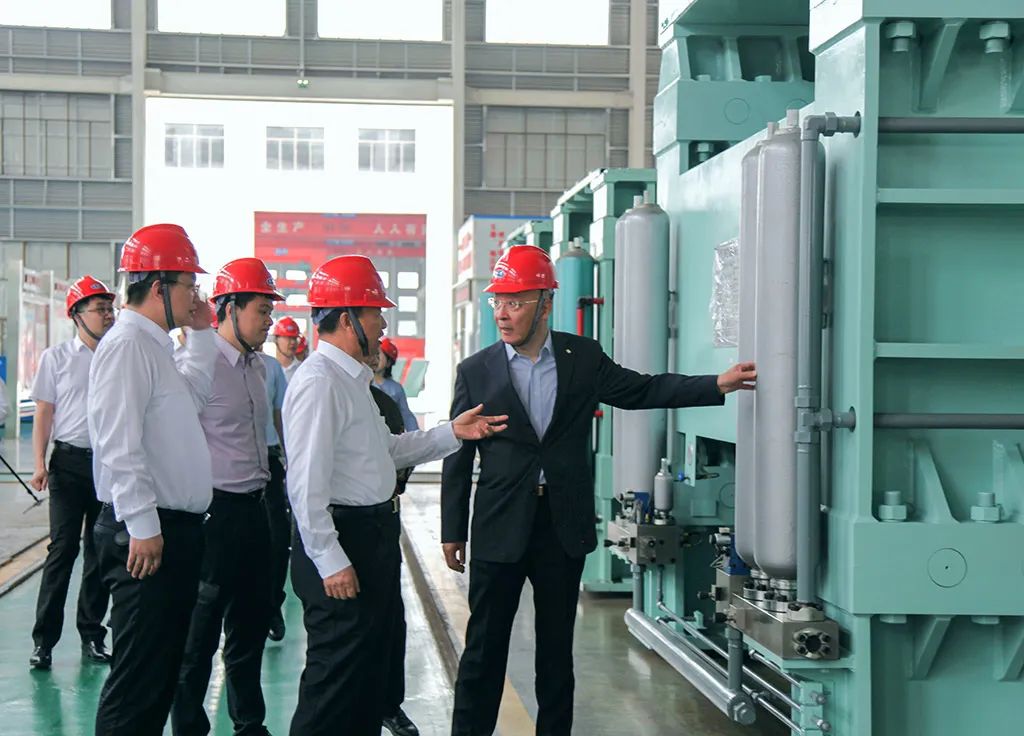 參觀中,王家安董事長向閻會長一行介紹了公司的發(fā)展歷程、現階段的裝備制造能力、近年來取得的重大成果,以及今后的主要目標和任務。