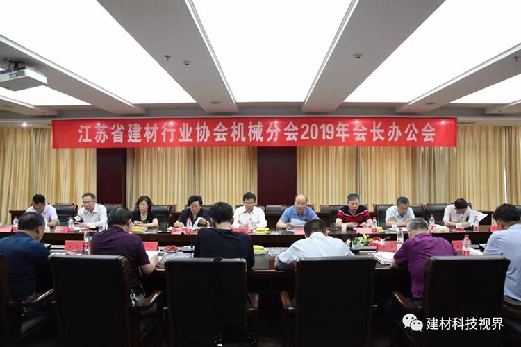 為進一步更新思維方式,確立綠色低碳發(fā)展方向,加強行業(yè)自律協(xié)調(diào),促進健康有序發(fā)展,2019年5月24日,江蘇省建材行業(yè)協(xié)會機械分會2019年會長辦公會議在鵬飛集團召開。
