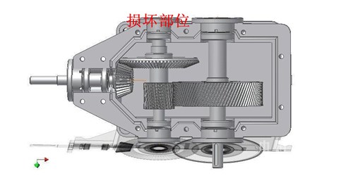 第二部分:減速機損壞維修以及后期防護。本公司四個鎖風閥的減速機都采用弗蘭德的垂直軸減速機,在鎖風閥承受較大力矩的時候,減速機內(nèi)部各級齒輪也相應的承受較大的力,同時由于該種減速機二級傳動軸兩側采用推力調(diào)心滾子軸承,而且軸承端蓋沒有進行螺栓緊固,只是做了密封處理,因此在承受較大力時,也就是在鎖風閥卡停的情況下會經(jīng)常出現(xiàn)將兩側軸承端蓋頂開的情況,浪費潤滑油,增加生產(chǎn)風險(如圖三)。